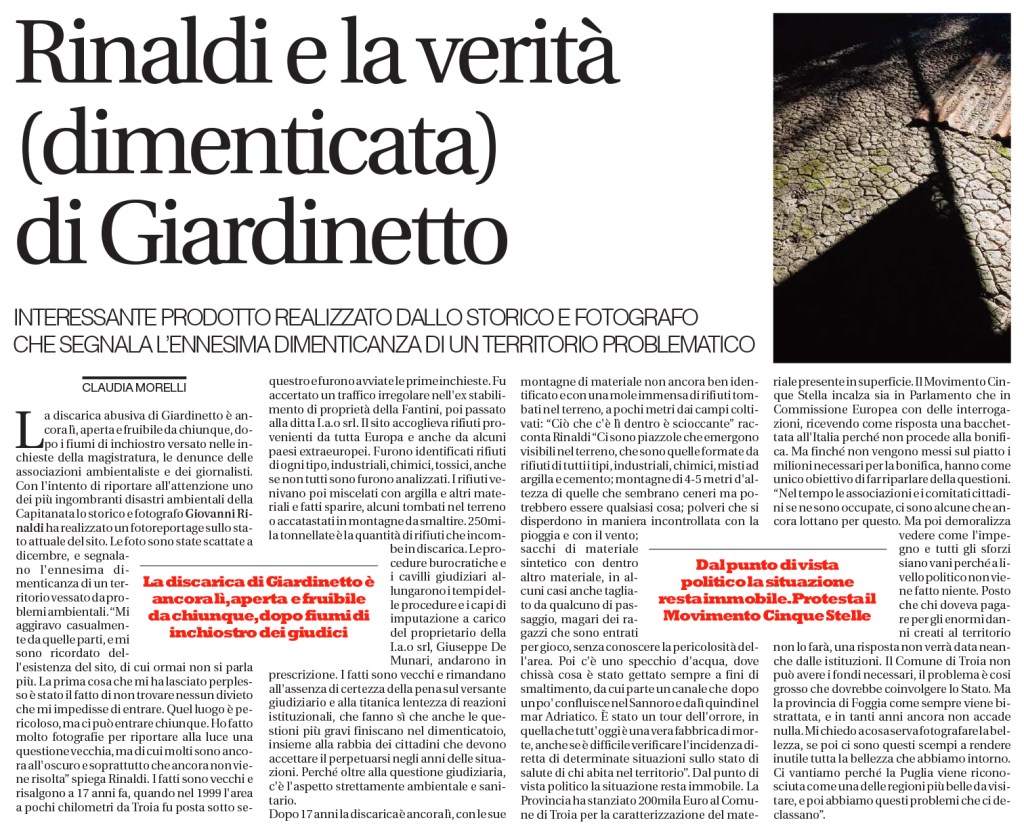 “Foggia, Giardinetto e la discarica dimenticata: come ‘Gomorra’” di R. Sardella “Restoalsud.it”