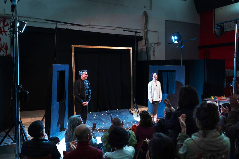 Ora, la maggior parte delle idee di spettacolo, per le compagnie che non viaggiano, come noi, nel mainstream, non vedono la luce per mancanza di spazi prove e possibilità economiche ma, per fortuna, questo nostro progetto ha visto l’interessamento di una realtà umbra, “Verdecoprente” con Rossella Viti e Roberto Giannini, che hanno deciso di darci fiducia. Grazie a loro, nel 2017, abbiamo potuto dare l’impulso vitale a questa idea totalmente autoprodotta. Come duo nato nell’underground romano ci siamo sempre rivolti ad un pubblico non addetto ai lavori e quindi anche il nostro linguaggio si pone come un dialogo con le persone e, a volte, spezzando quella dimensione sacra del luogo inviolabile che è lo spazio dell’attore e del testo, amiamo la ricerca della complicità nella misura in cui diventa un’esperienza collettiva viva attraverso il respiro del pubblico.