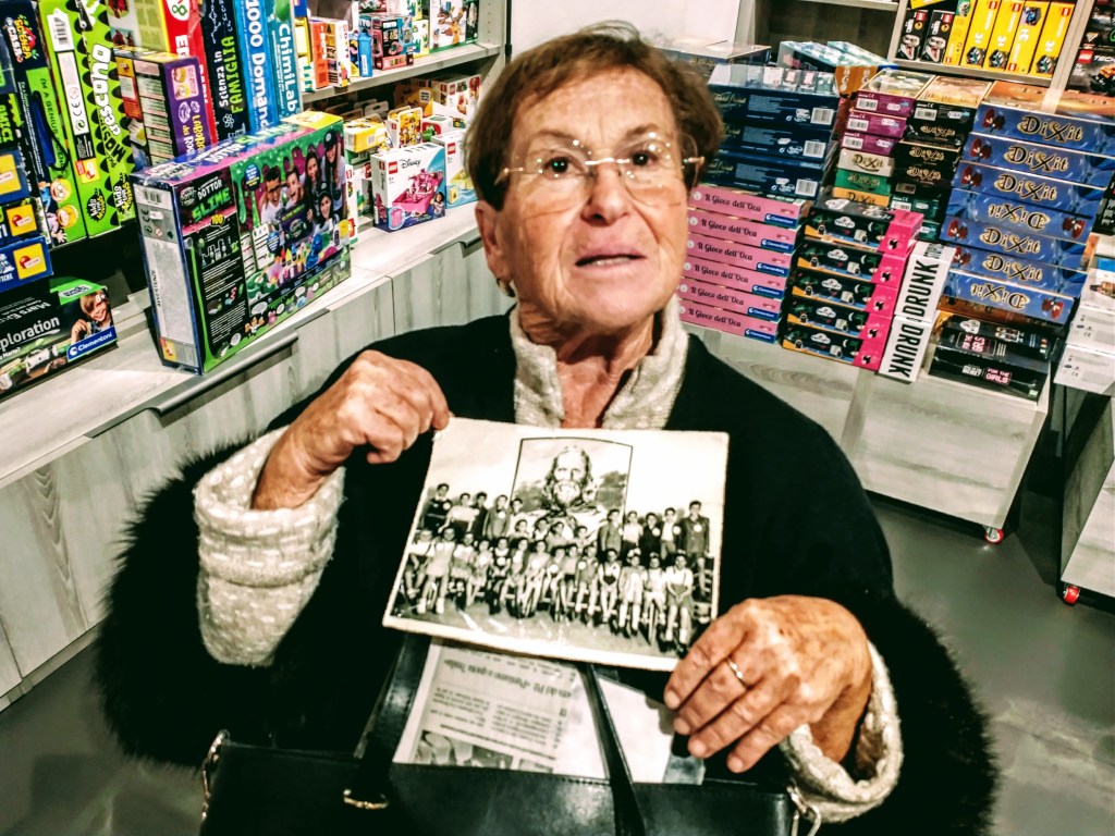 Proprio come il titolo del suo libro! La mia famiglia era poverissima, vivevamo a Salerno. Camminavo scalza e mia madre per non farmi sfigurare, prima di mettermi sul treno, mi fece un paio di sandaletti di cartone. Arrivai a Treviso dopo due giorni di paura e con un sandaletto e mezzo. Sul treno c’era anche la mia sorellina. Per la stanchezza mi addormentai e, nel frattempo, fecero scendere una parte dei bambini. Quando mi svegliai mia sorella non c’era più, era andata con gli altri bambini verso Belluno. Sul momento mi spaventai tanto, ma poi ci ritrovammo a Treviso. Arrivammo in stazione molto tardi, ci aspettavano da ore. Pioveva. Le signore che erano lì in attesa, sceglievano «Questa qui la prendo io, e questa tu». Io non parlavo, quando si avvicinò una signora e mi disse «Questa piccola è la più bellina» e mi domandò se la volevo seguire. Io pensavo di essere brutta e sporca. Non parlavo. Era quella la nostra educazione di giù. Facevo solo cenni con la testa. Lei, Rosa Biancotto, mi disse che aveva una bella stanza pronta per me, dei bei pesci appena infornati. E cominciai a sorridere. Il marito Luigi Cocchetto, partigiano, avvicinò la sua bicicletta. Ricordo che aveva messo un bel panno sul tubo del telaio per farmi sedere. Mi vollero subito un gran bene. Ero partita da casa piena di terrore… del treno, dei comunisti, poi, quando arrivò il giorno del ritorno piangevo, non volevo tornare. Poi, loro, la famiglia Calzavara, chiesero ai miei genitori se potevano adottarmi.