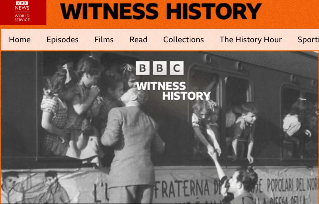 Bianca D’Aniello è ora protagonista anche del podcast WITNESS HISTORY prodotto dalla BBC (News/World Service) nella puntata Italian Happiness Trains cura da Natasha Fernandes. Disponibile online dal 27 giugno 2025.