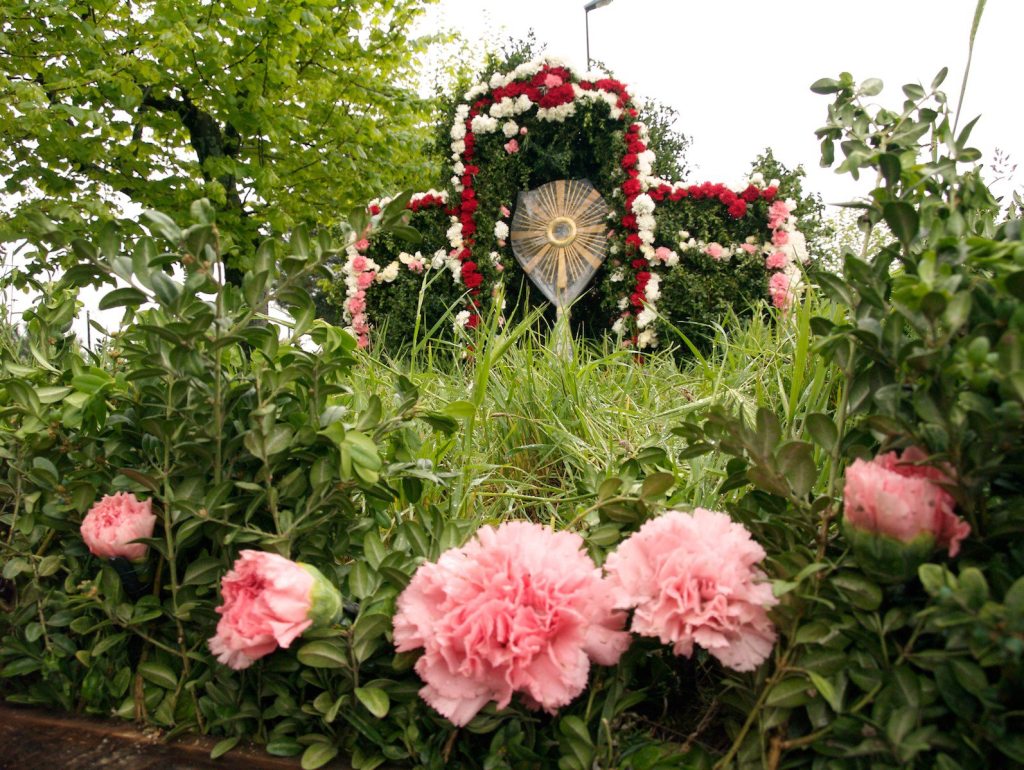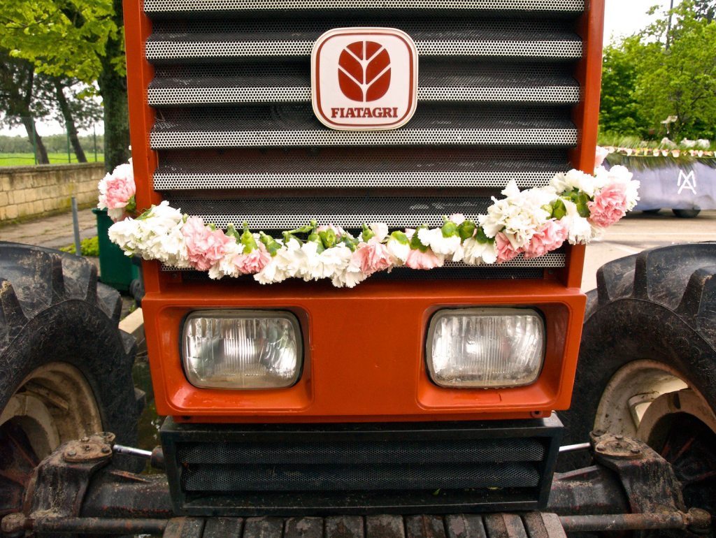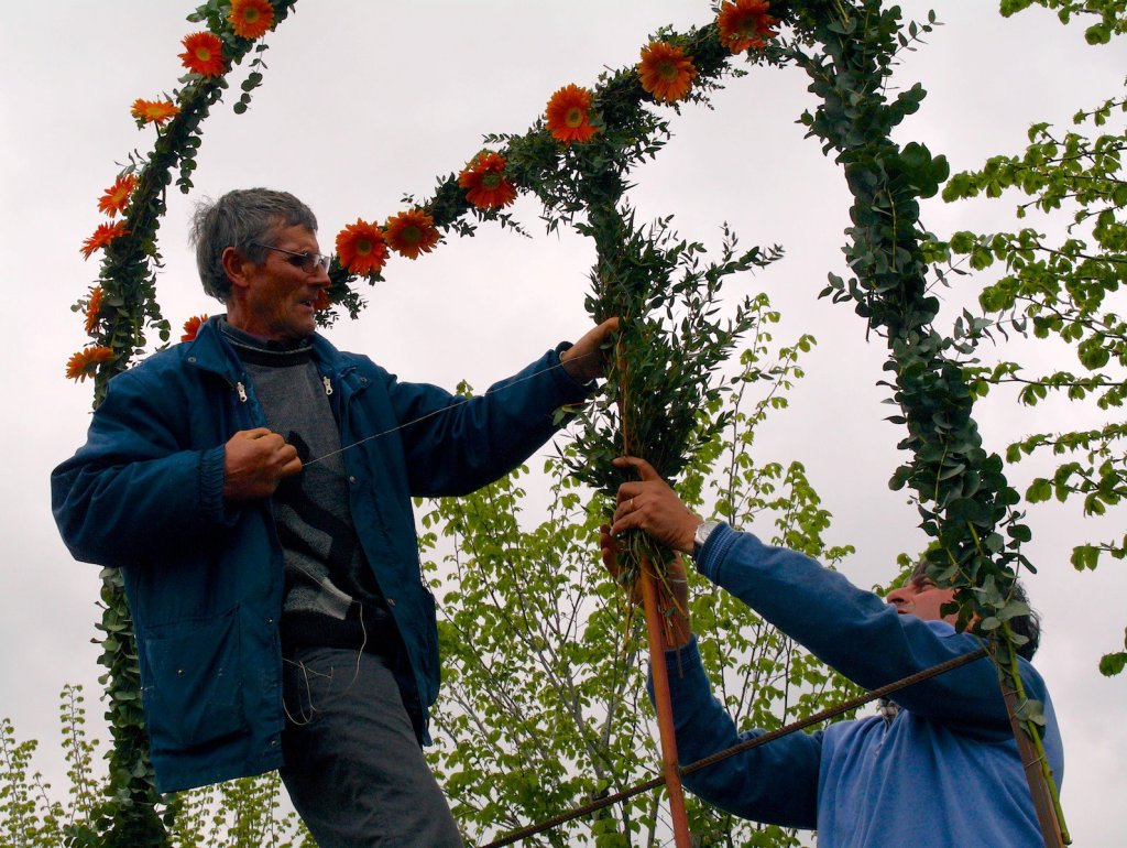 Eppure i protagonisti sono gli stessi, venuti da paesi diversi ma ancora in prevalenza legati al lavoro della terra, un mondo popolare incrinato e percorso da recenti, profonde trasformazioni, tanto capace di creatività e immaginazione quanto vulnerabile ai moltiplicati influssi di mondi circostanti e diversi, vagheggiati in ostentati tentativi di emulazione. Non c’è da stupire se modesti e sbrigativi preparativi, motivati dal rispetto di una originaria essenzialità rituale, convivono con smaliziati fervori di arredatori professionisti appositamente ingaggiati o con capolavori ornamentali risultato di giorni e giorni di abile, appassionato impegno. Dal saccheggio del bosco circostante per addobbi di semplici frasche all’acquisto di migliaia di garofani e rose per comporre trionfali mosaici, dalle pure simbologie cromatiche ai preziosismi di abiti e accessori; dalla straripante scena reale alla stilizzata scena metaforica, tutto trova spazio e accoglienza sul palcoscenico sconfinato dell’immaginario popolare.