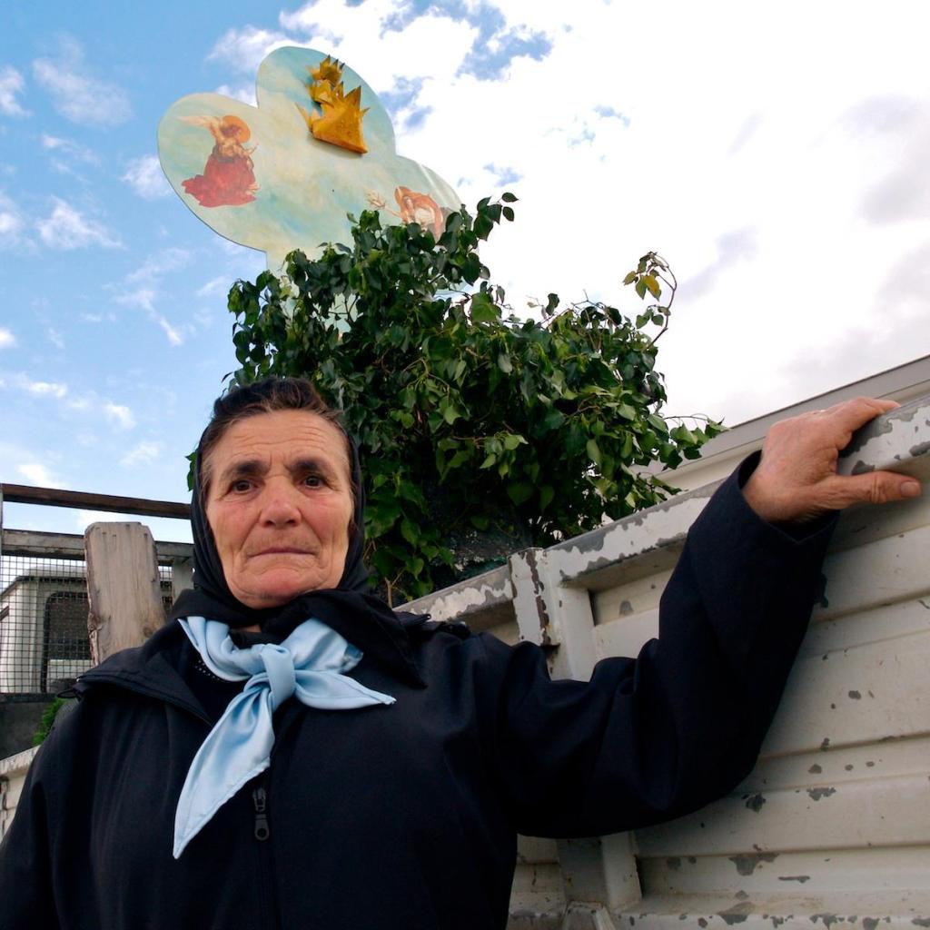 Nei volti incantati e attoniti degli attori bambini si materializzano le fantasie oniriche di donne e di madri, mentre irrigiditi e composti nei loro ruoli ricreano portamenti e sembianze di quelle sacre apparizioni che invadono i sogni. A loro è demandato il compito di farsi tramiti e intercessori del favore divino, quasi vittime sacrificali di un simbolico omaggio allo spirito rigoglioso della fertilità e della terra. Stuoli di angeli bianchi, azzurri e rosati per evocare immagini di sublimazione, potenza, regalità. Santi dalle fogge bizzarre, ispirate a classici eroi e cinquecenteschi condottieri. Personaggi biblici che sembrano usciti da vecchie pellicole sull’impero romano, gli stessi che popolano processioni e sacre rappresentazioni del venerdì santo: cristi e apostoli, matrone e ancelle, soldati e imperatori, in una fantasmagoria di tuniche, scialli, mantelli; barbe e parrucche fluenti, acconciature di perle e strass, rasi e chiffon in vaporose tonalità di lilla, rosa antico e dorato. Ma soprattutto tante piccole Incoronate e tanti piccoli San Michele, le divinità protagoniste su cui indugiano fantasie e fervori rappresentativi. Madonnine dal volto annerito e mani congiunte dentro guanti scuri, rilucenti di gioielli cosparsi su luminosi abiti bianchi e dorati; pizzi, tulli e broccati accesi dai bagliori di strass e paillettes, in armonico contrasto con i pallidi rosa e gli azzurri soffusi degli sfondi: le aurore, i cieli, i paradisi da cui la divinità emerge come un astro, dominando le comunità di angeli e le figure sacrali in adorazione o in austero atteggiamento di araldi, conformi all’archetipo cromatico nella varietà metaforica di costumi e accessori.