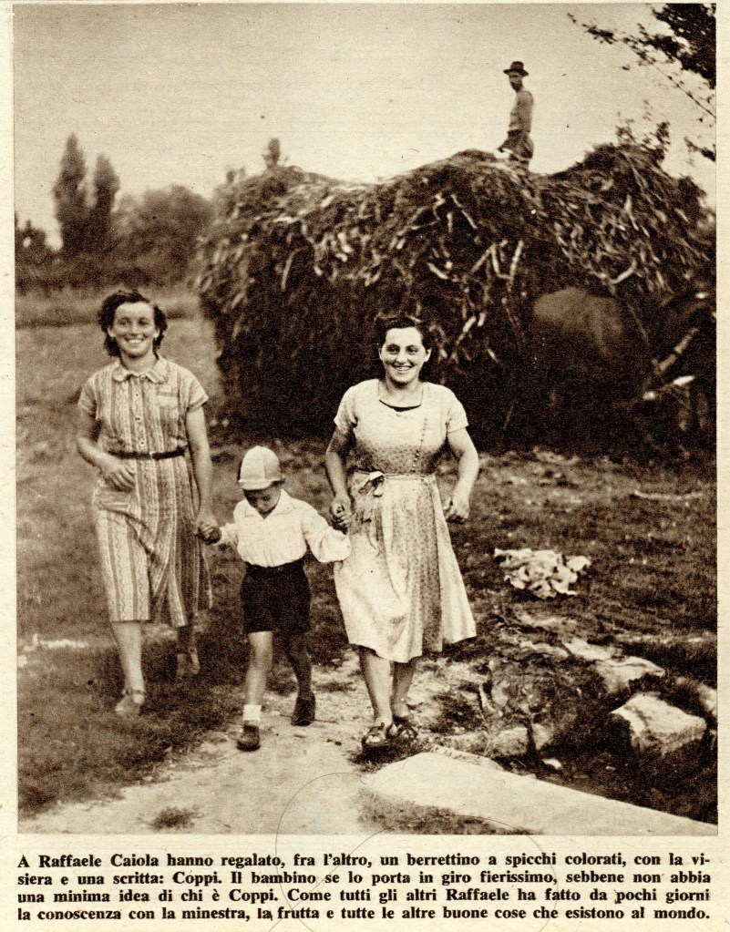 Raffaele Caiola e Concetta La Pietra, invece, abitano in campagna e a quest’ora gireranno fra le viti a cogliere i grappoli più maturi. Era quasi sera quando sono entrata nella corte della cascina dove lavora Antonio Mazzali, lo «spesato» che ha accolto Raffaele nella sua casa, e Raffaellino guardava attento i carri carichi di fieno che lentamente entravano. Assomiglia molto a Concetta un’altra bimba di Foggia, ospite della sarta Cavalieri. Un paio di occhi neri sul viso abbronzato. Ha fatto da poco la conoscenza con la minestra e il latte, come tutti gli altri. Hanno ragione le mamme di Parma a considerare questi bimbi come dei neonati.