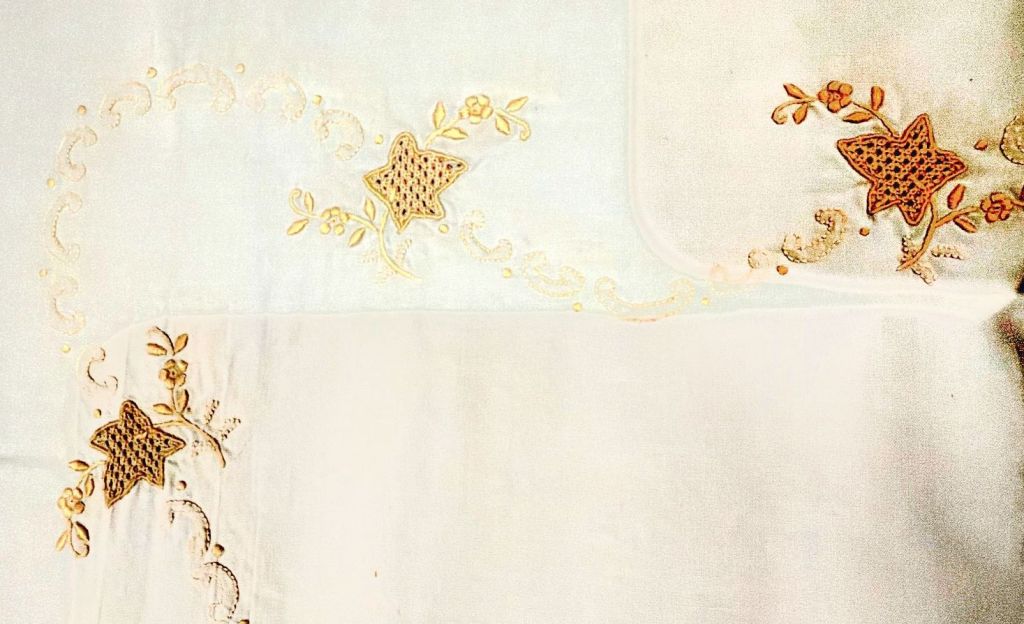 Ti mando una foto del ricamo di Mamma, un lenzuolo matrimoniale che ha finito prima di venire in Australia. Lo tengo caro.