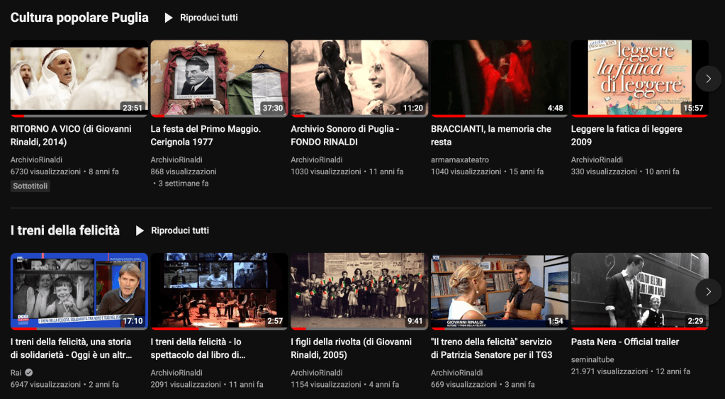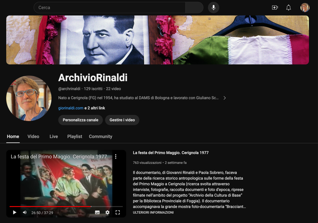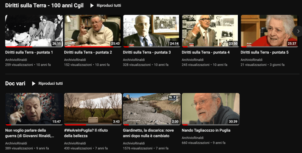 Di seguito gli screenshot del canale youtube Archivio Rinaldi